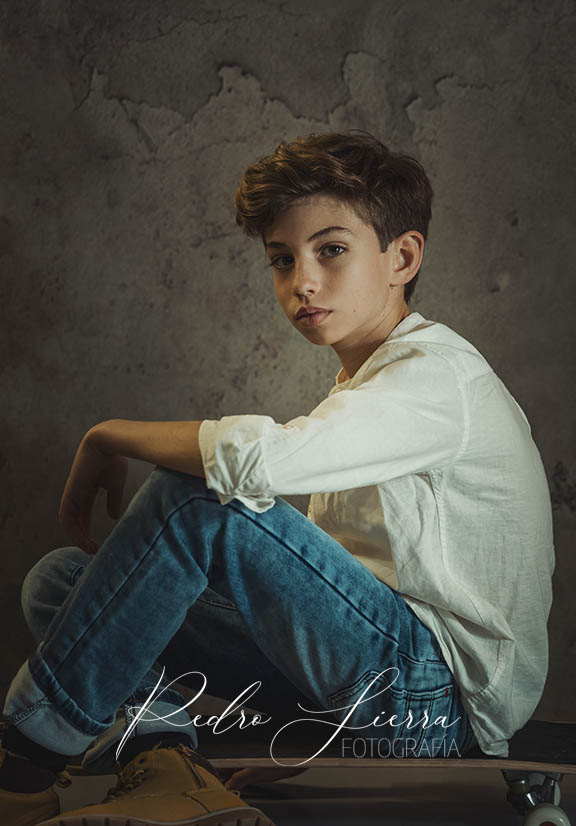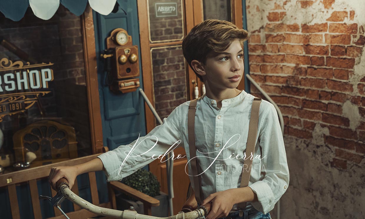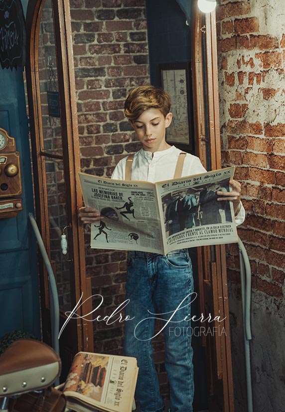 Las sesiones de Comunión para niño y niña las preparo de la misma forma, pero con matices de edición, atrezzo y posado. Muchos padres me solicitan que el posado de niña sea más ornamentado, con poses más cuidadas y teatrales. Sin duda, el aprovechamiento de un vestido de comunión da muchas posibilidades en el acabado final de la fotografía. Sin embargo, los niños prefieren posados más naturales, con miradas a cámara y complementos como maletas, catalejos, etc...